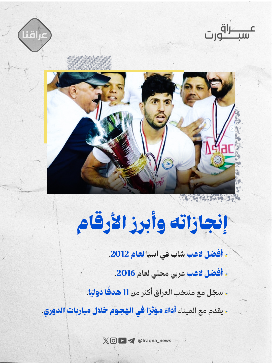 نجم الميناء والمهاجم القوي للمنتخب العراقي