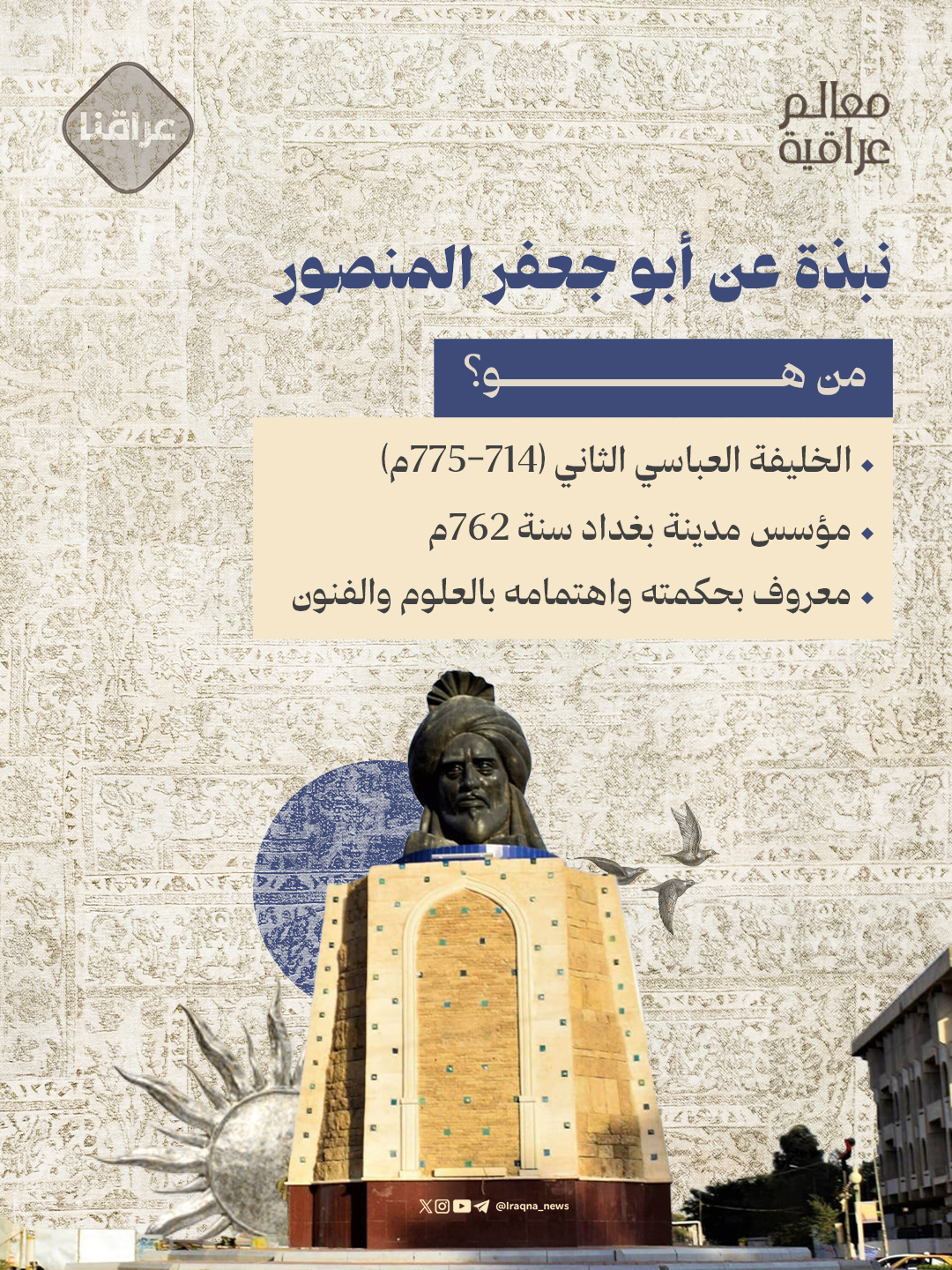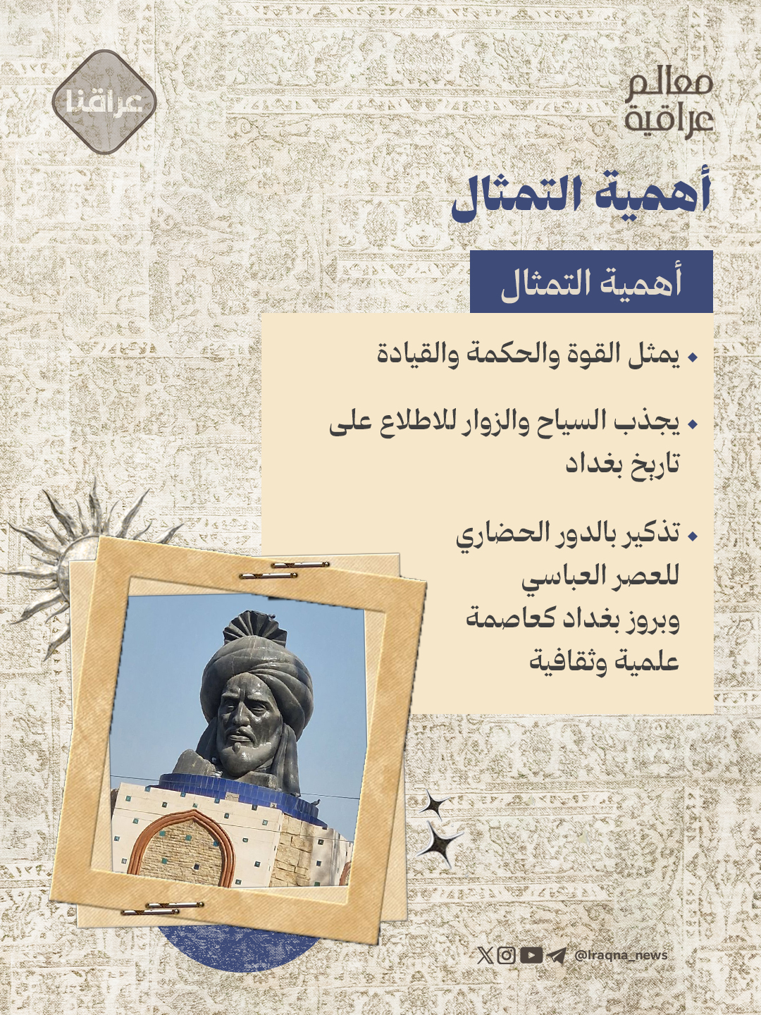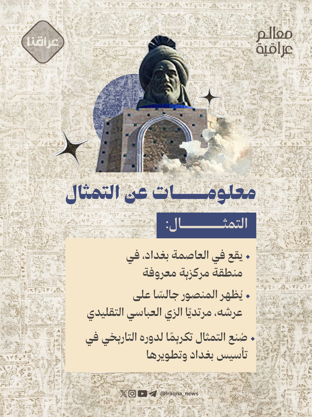صُنع التمثال تكريمًا لدوره التاريخي في تأسيس بغداد وتطويرها