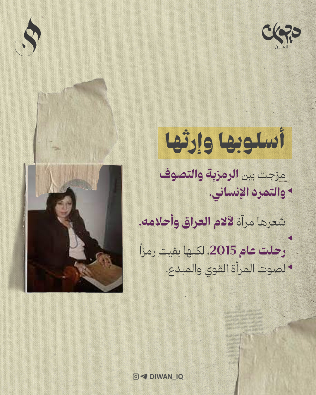 كانت من أبرز الشاعرات العراقيات بعد نازك الملائكة.